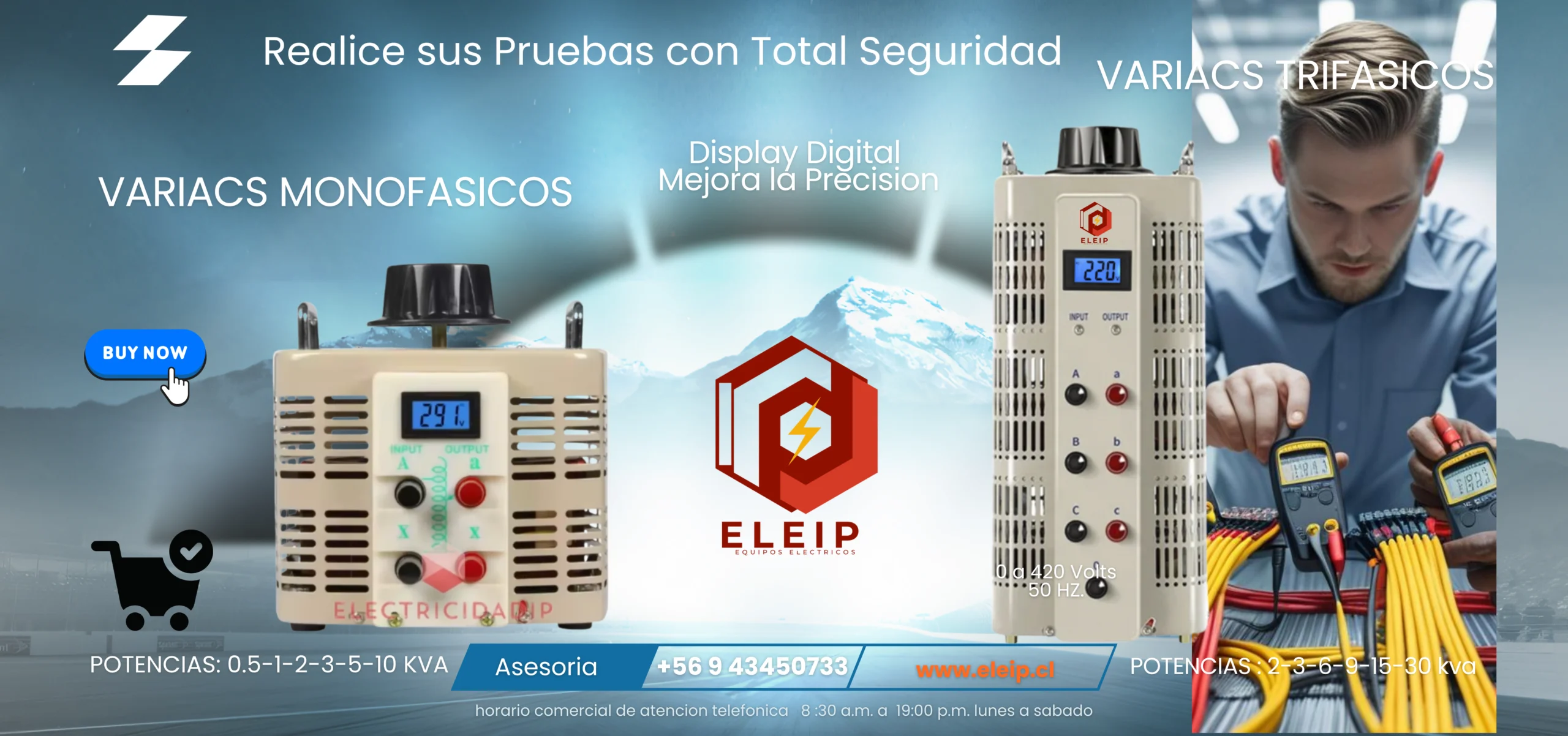 Voltaje de Ingreso: 380VAC Voltaje de Salida: 0V – 430VAC Potencia: 2 KVA Fase :3+N(3PH – Trifásico) Frecuencia: 50-60 Hz Factor de Potencia: 0.9